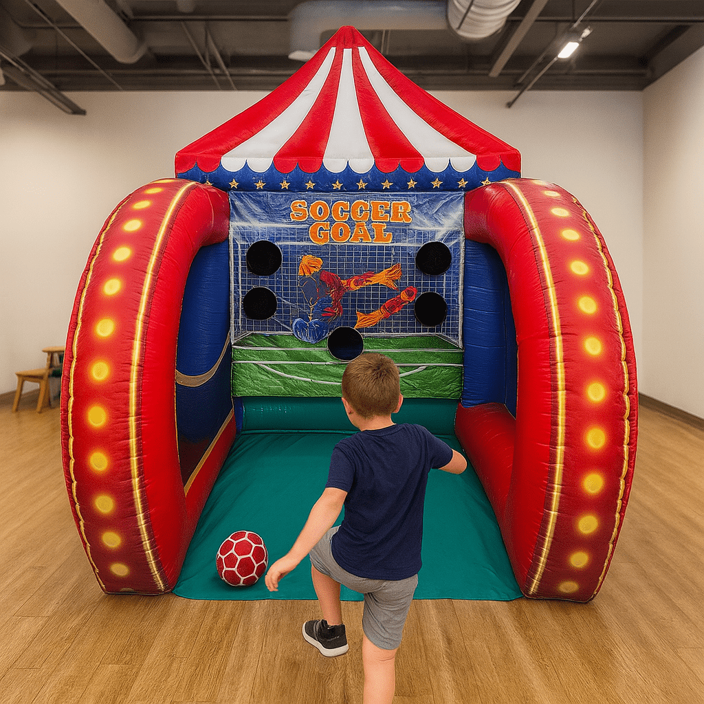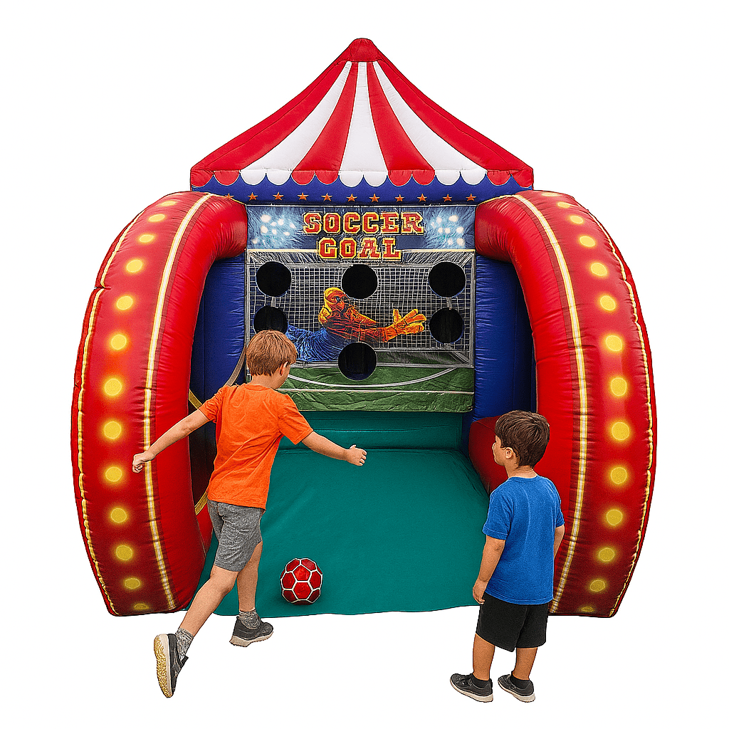 From school fairs to birthday parties and festivals, the Carnival Soccer Inflatable Game delivers fast-paced action and high energy. Players take aim, shoot, and score in a friendly, competitive setting.