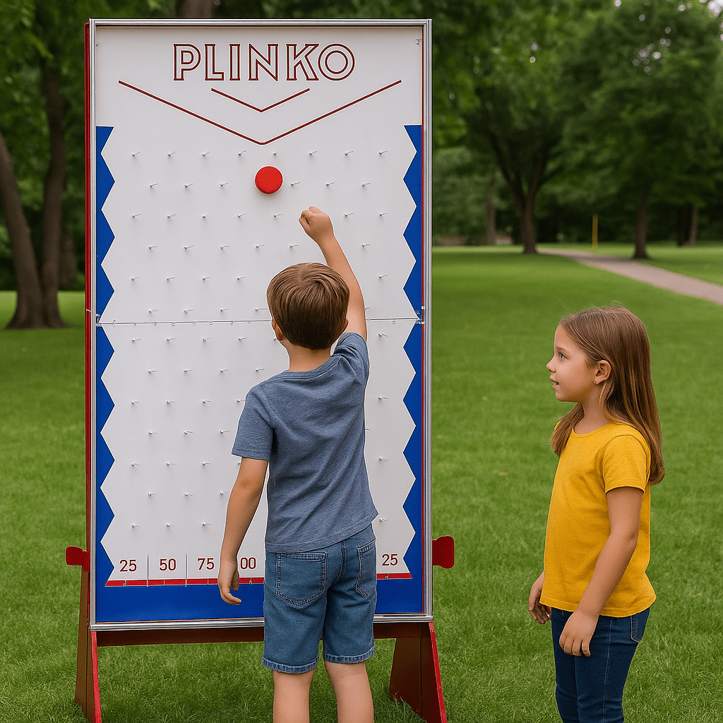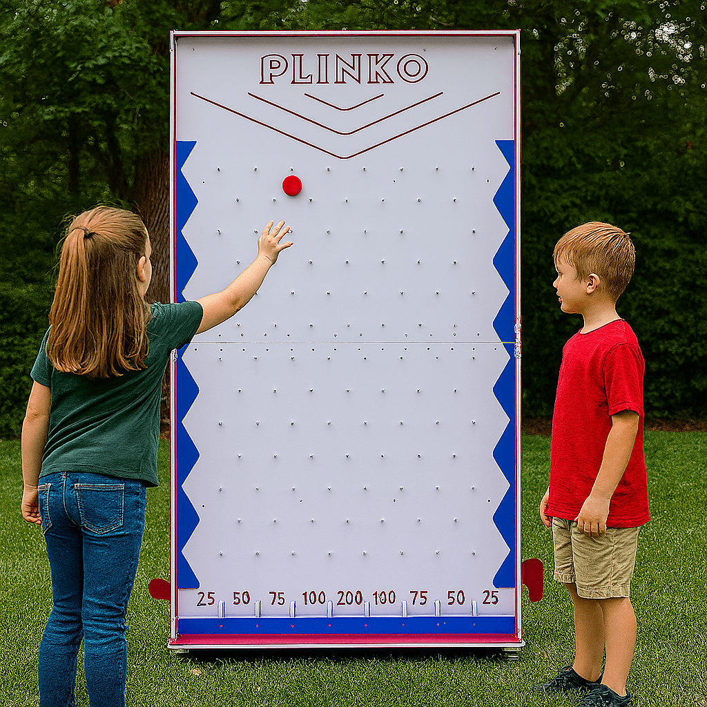 Looking to draw a crowd? The Giant Plinko Game brings game show energy to any event. Just drop the disk and watch it bounce through the pegs—where it lands is up to chance and cheers!