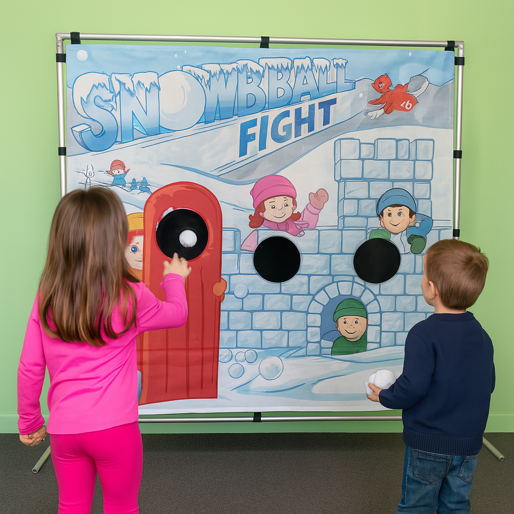Bring snowy excitement to any gathering—no cold required! Snowball Fight Frame Game lets guests toss soft fleece “snowballs” into fort-style targets. Fast-paced, playful, and perfect for all ages.