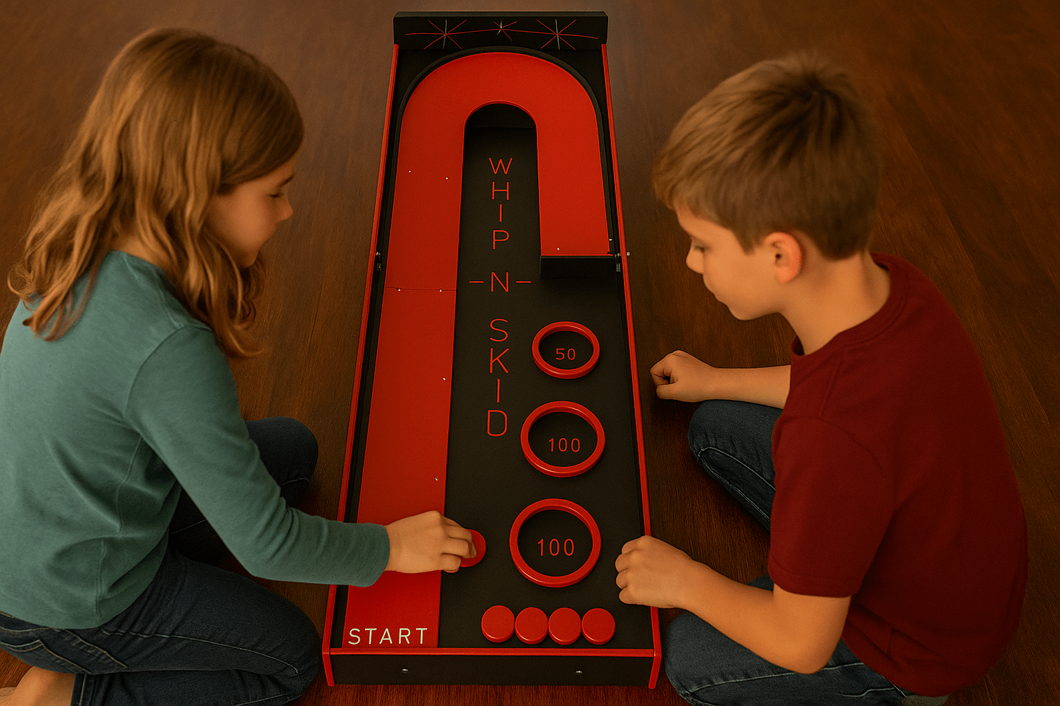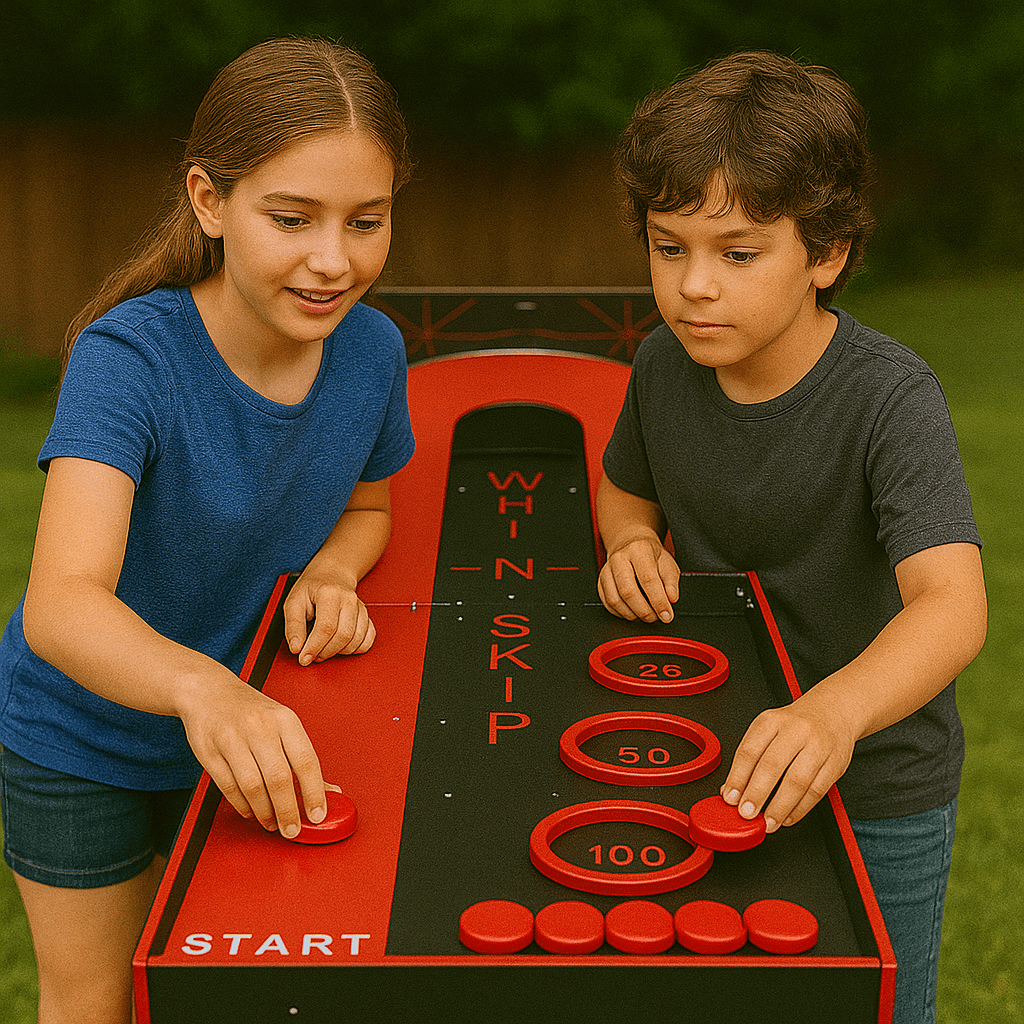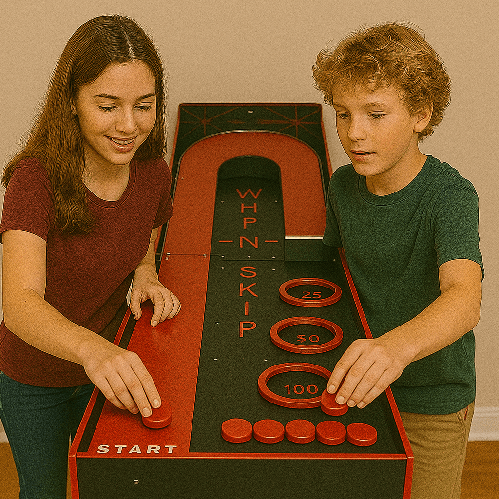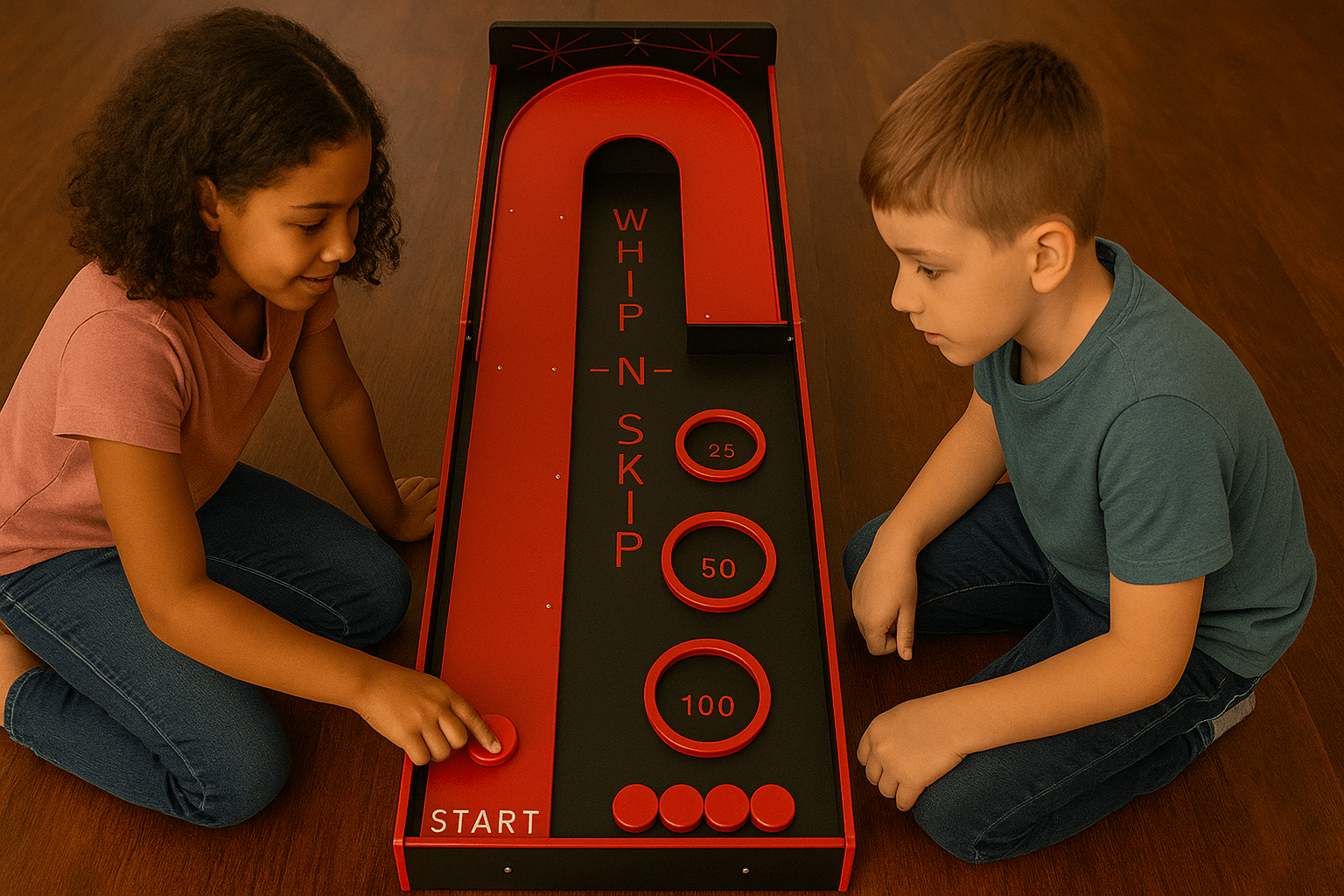 Think you’ve got the finesse? The Whip & Skip Carnival Game challenges players to flick a puck around the curve and land it in the target ring. It’s all about timing—go too fast and you’ll fly past the goal!